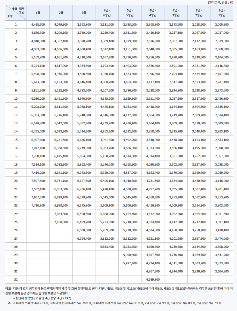 2026년 공무원 보수 인상률, 교육공무원(교사)봉급, 경찰 월급, 소방 호봉, 군인 급여