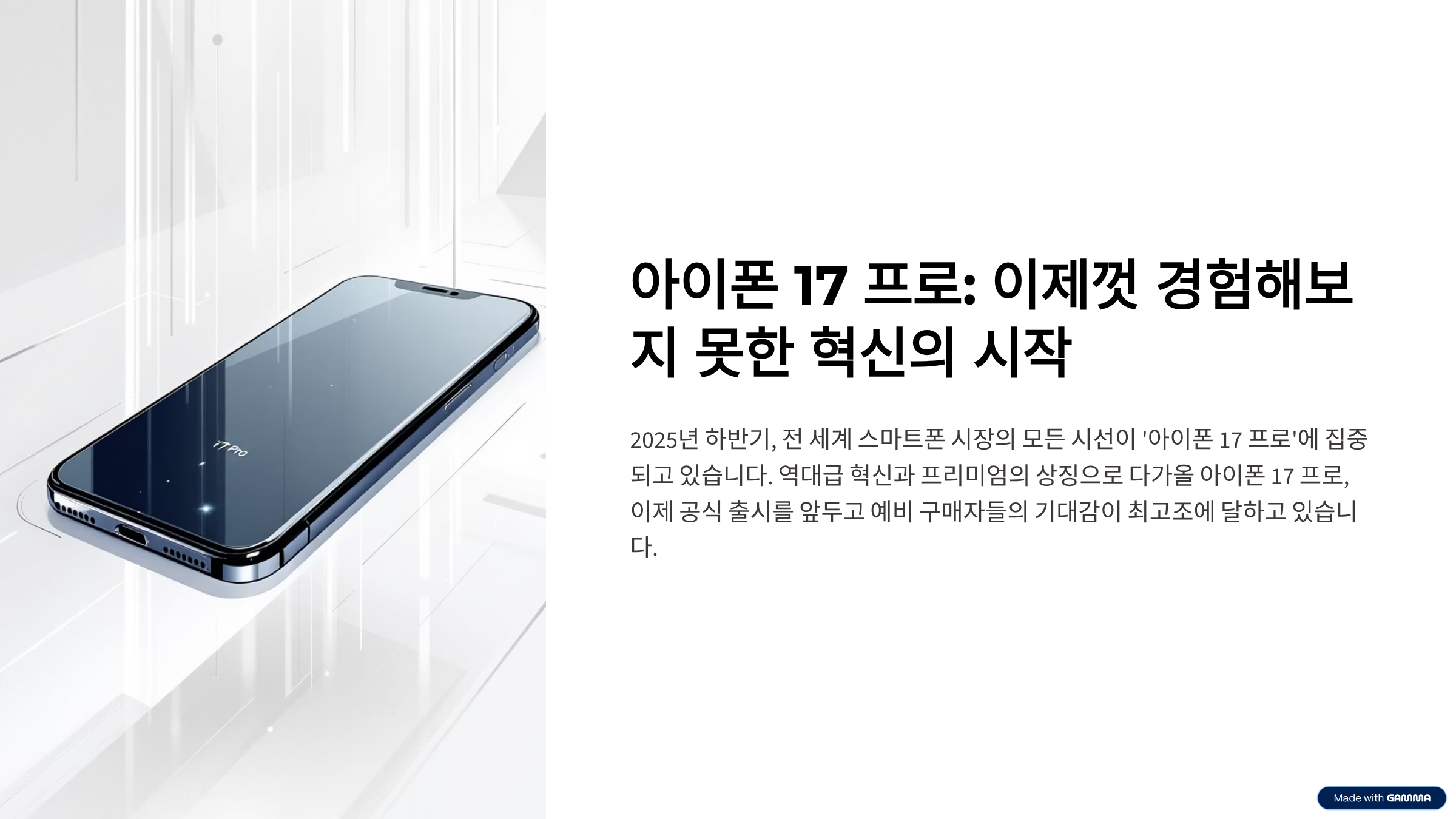 2025년 하반기, 스마트폰 시장의 모든 시선은 ‘아이폰 17 프로’에 쏠려 있습니다. 역대급 혁신과 프리미엄의 상징, 아이폰 17 프로가 마침내 공식 출시를 앞두고 있어 예비 구매자들의 기대감이 최고조로 달하고 있습니다. 이 글에서는 아이폰 17 프로의 사전예약 일정, 공식 출시일, 가격, 놓치면 후회할 꿀팁까지 한 번에 정리해드립니다.