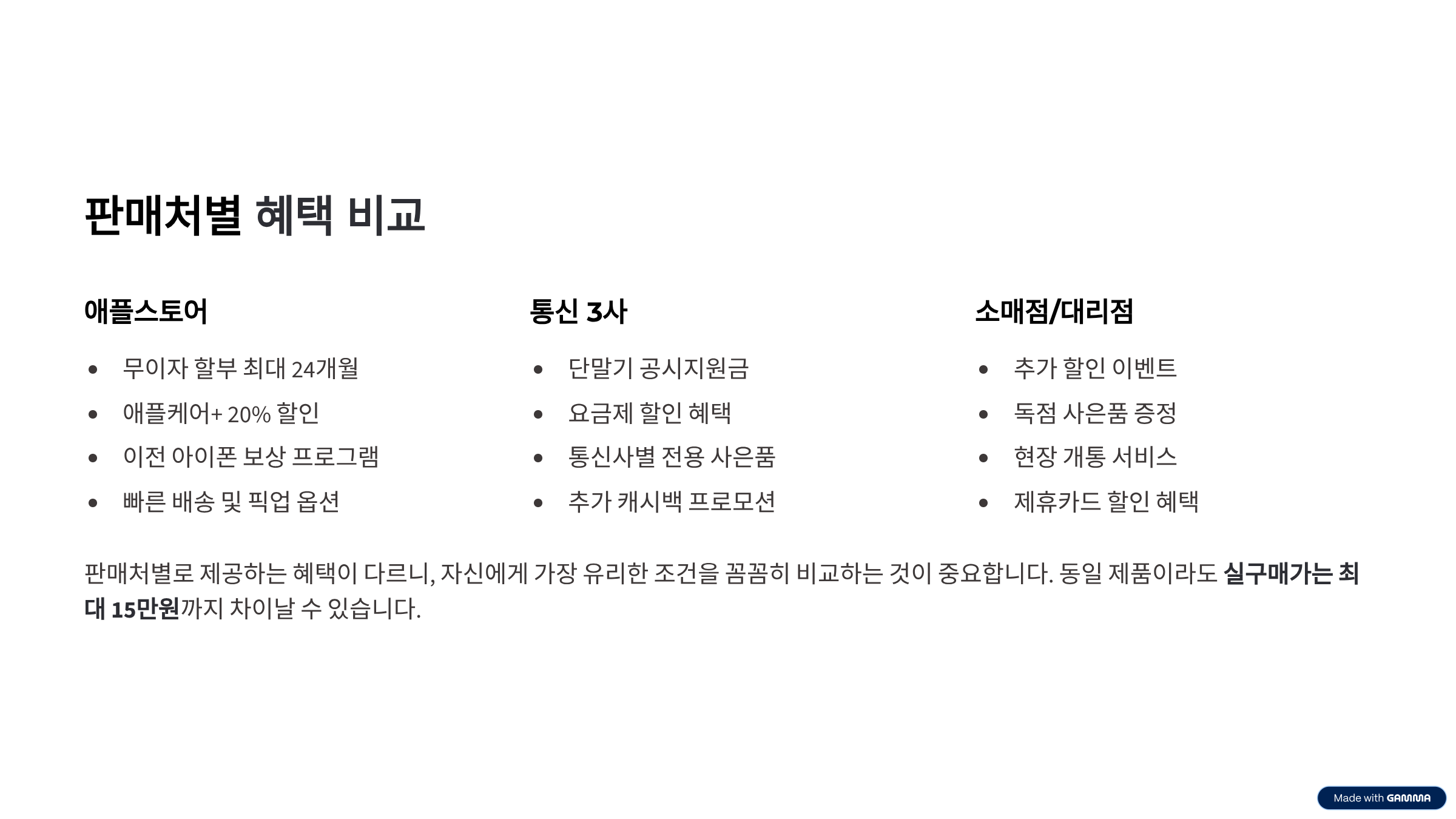 특히 사전예약 성공 고객에게는 출시 당일 바로 수령, 할인·사은품 이벤트, 애플케어 할인 등 다양한 독점 혜택이 제공될 예정입니다. 통신사별 추가 지원금, 캐시백, 제휴카드 할인을 꼼꼼히 비교하면 실구매가를 더욱 낮출 수 있으니, 복수의 판매처를 체크하는 것이 포인트입니다. 단말기 가격은 동일하지만 지원금, 사은품, 혜택이 다르니 직접 비교해 보시기 바랍니다.