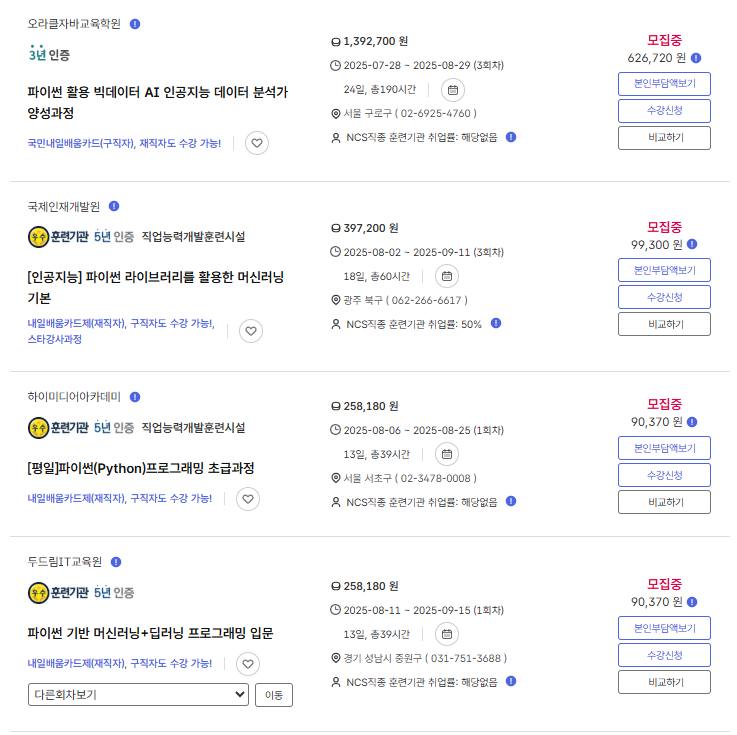 👉 이후 글 예정: 내일배움카드 수강 후기 TOP5